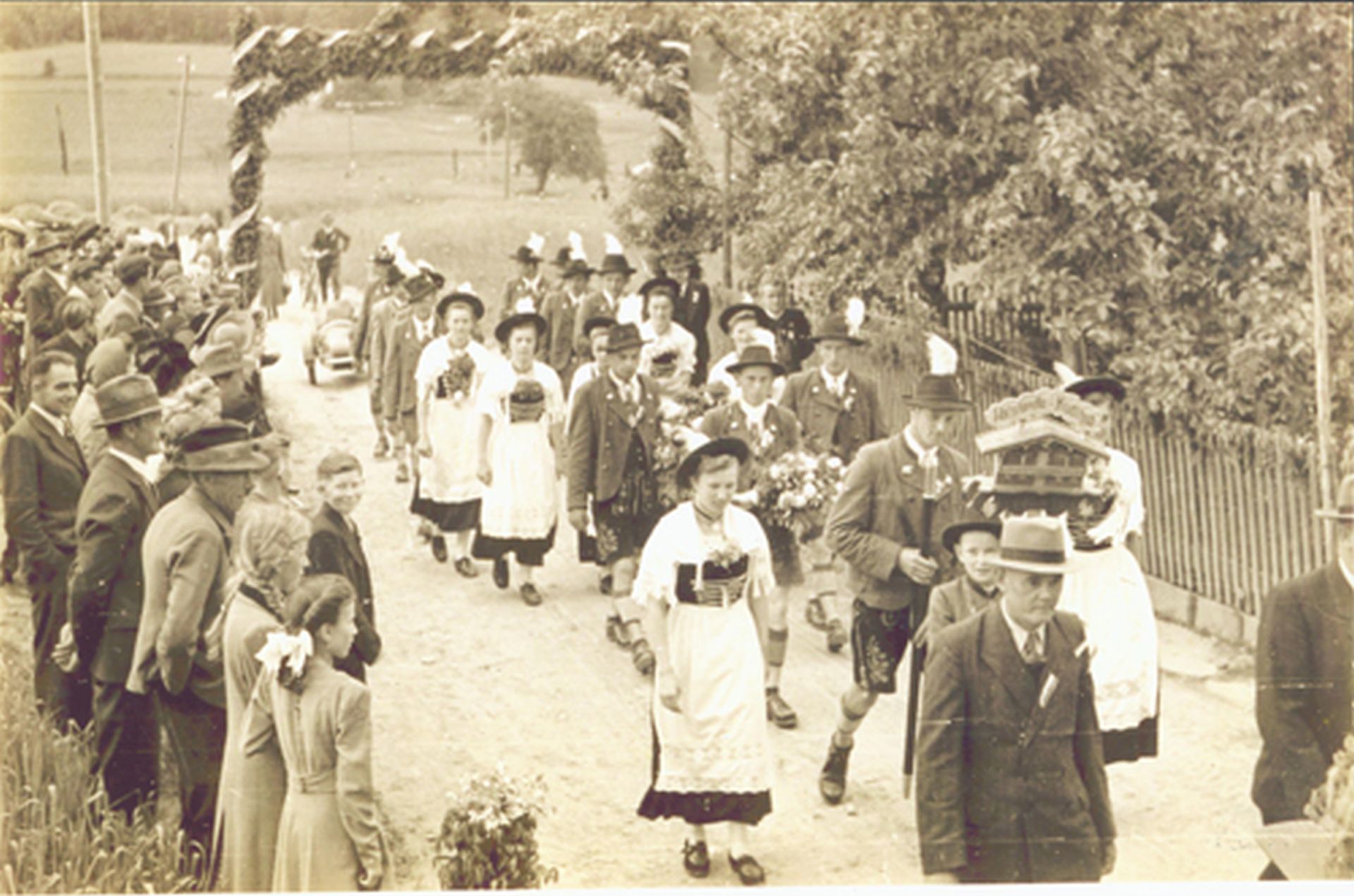 Es war im Jahr 1921, als sich ein paar Burschen von dem Schmiedegesellen Hans Bräu aus dem Oberland zunächst das Schuhplatteln zeigen ließen und dann im Spätherbst einen Trachtenverein gründeten. Die Chronik berichtet von Anfangsschwierigkeiten mit dem Pfarrer und dem Lehrer wegen der Tanzerei. Aber mit Unterstützung des damaligen Bürgermeisters und einiger angesehener Bauern ging’s bald aufwärts mit dem jungen Verein, der damals dem Chiemgau angehörte. Die älteste Aufzeichnung über die Holzlandla findet sich im Trachten-Taschen-Kalender von 1923. In diesem Jahr sind 12 aktive und 15 passive männliche Mitglieder eingetragen, dazu bereits acht aktive weibliche Mitglieder. Das erste Trachtenfest wurde 1922 als Waldfest in einer Kiesgrube bei Kudlhub abgehalten. Nach einigen erfolgreichen Jahren ließ die Begeisterung nach, manches Mitglied verließ die Heimat. Als dann der Krieg ausbrach, musste der Verein seine Tätigkeiten vorläufig ganz einstellen, da fast alle Mitglieder zum Militär einberufen wurden.